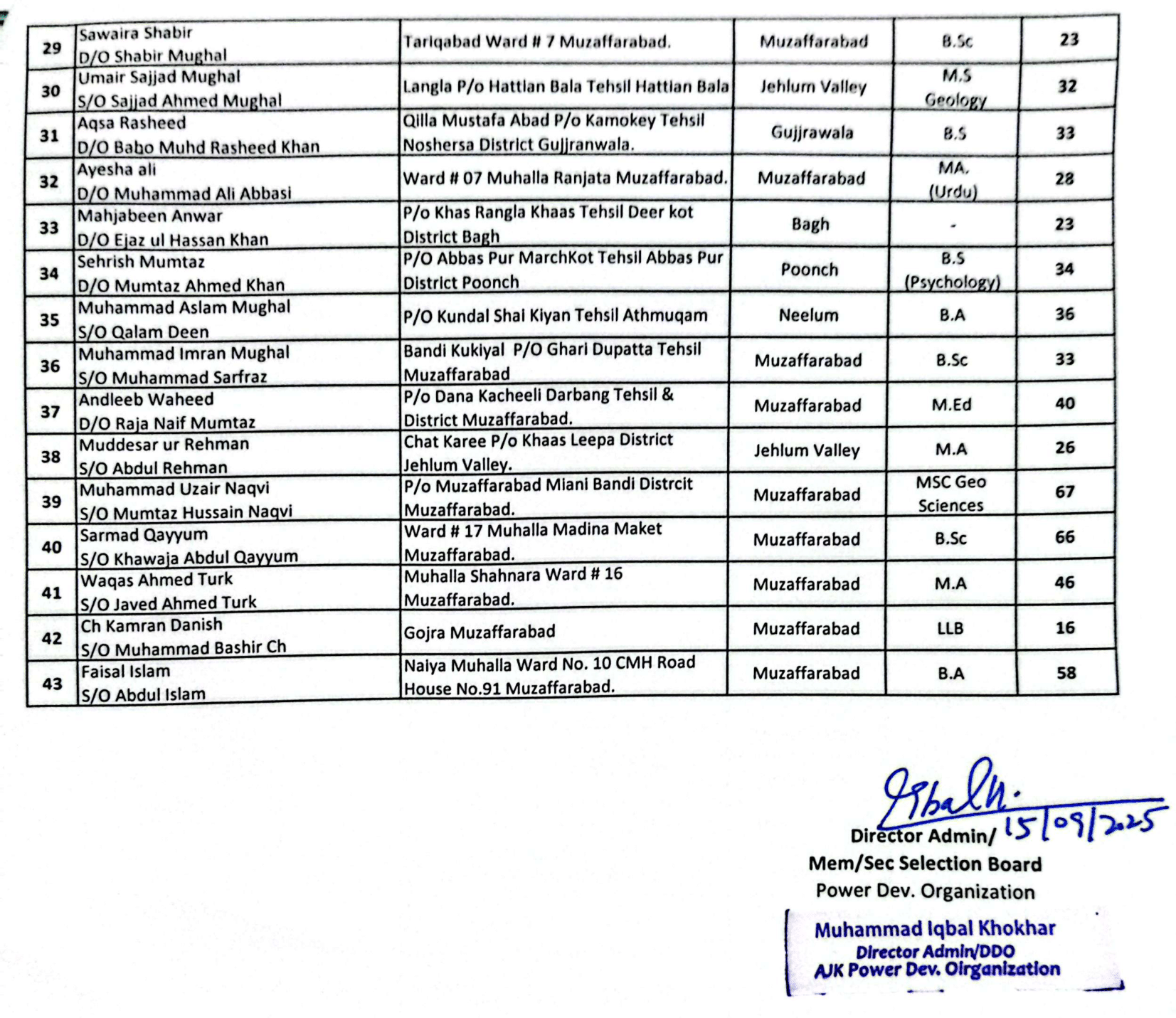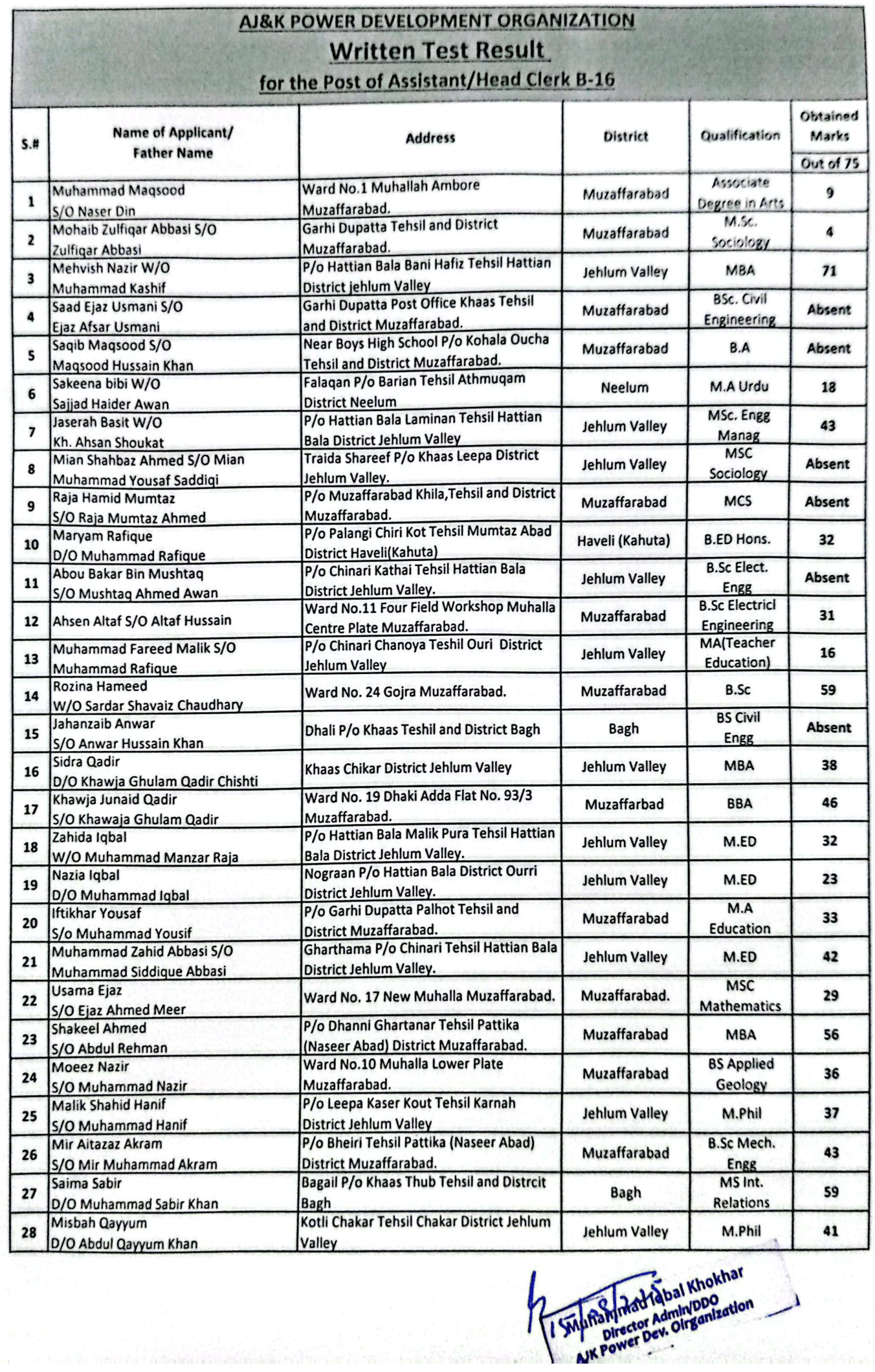“Merit List of the Written Test for the Post of Head Clerk/Assistant (B-16)”